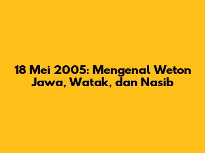 Weton Jawa adalah sistem penanggalan tradisional yang kaya akan makna dan sering digunakan untuk memahami berbagai aspek kehidupan. Weton sendiri merupakan gabungan dari hari dalam kalender Masehi (Senin, Selasa, dll.) dan hari pasaran dalam kalender Jawa (Legi, Pahing, Pon, Wage, Kliwon). Bagi banyak orang, mengetahui weton kelahiran bisa memberikan gambaran tentang karakter, potensi, hingga nasib seseorang. Nah, dalam artikel ini, kita akan membahas secara mendalam tentang weton untuk tanggal 18 Mei 2005, bagaimana cara menghitungnya, serta apa saja yang bisa diungkapkan dari weton tersebut.
