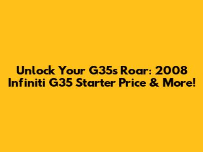 The Nitty-Gritty: 2008 Infiniti G35 Starter Price Breakdown
