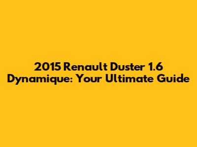 2015 Renault Duster 1.6 Dynamique: A Comprehensive Guide