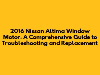 2016 Nissan Altima Window Motor: Troubleshooting & Replacement Guide