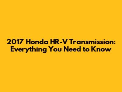 2017 Honda HR-V Transmission: Everything You Need To Know