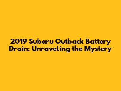 2019 Subaru Outback Battery Drain: Causes & Fixes
