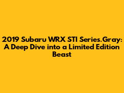 Alright, gearheads and Subaru fanatics! Let's talk about a car that caused quite a stir when it dropped: the 2019 Subaru WRX STI Series.Gray. This wasn't just any STI; it was a limited-edition run, and as you might guess from the name, it came draped in a sleek, exclusive grey. This article is going to be your ultimate guide to this awesome machine. We'll dive into the specs, the features that made it special, and what made it a highly sought-after car. So, buckle up and let's get into it, shall we?