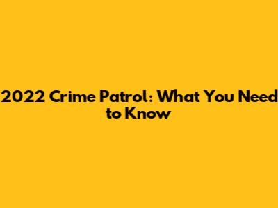 2022 Crime Patrol: What You Need To Know