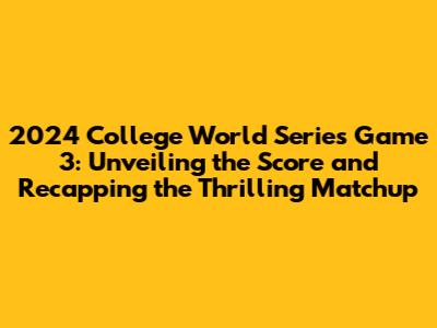 Hey baseball fanatics! Let's dive into the electrifying world of college baseball and break down the 2024 College World Series Game 3! This was a battle for the ages, and we're here to give you all the juicy details, from the final score to the key moments that defined the game. So, grab your snacks, settle in, and get ready for a deep dive into what made Game 3 such a memorable experience. We're going to cover everything, from the nail-biting innings to the standout performances that had everyone on the edge of their seats. Get ready for a home run of a recap! The 2024 College World Series has been nothing short of spectacular, and Game 3 was a shining example of the passion, skill, and sheer determination that college baseball brings to the table. We’ll look at the teams involved, the strategies employed, and the pivotal plays that shaped the outcome. This game, like the entire series, is a testament to the dedication of these student-athletes, the coaches, and the fans who make the College World Series such a special event. We will also examine the overall context of the series, how Game 3 fits into the larger narrative, and what the outcome meant for the teams involved as they continued their quest for the championship title. So, without further ado, let’s get into the heart of Game 3! Get ready to relive every moment, every hit, and every out. It’s going to be a wild ride, and you won’t want to miss a single detail. We'll explore the impact of key players, the crucial turning points, and the overall atmosphere of the game. Let's make this recap a grand slam! This game was more than just a contest; it was a showcase of talent, grit, and the unwavering spirit of college baseball. From the opening pitch to the final out, Game 3 was packed with unforgettable moments that will be talked about for years to come. Now, let’s get right into the action and unpack everything that happened on that unforgettable day. Get ready to experience the excitement all over again!
