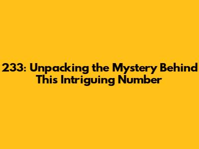 Hey everyone! Today, we're diving deep into a number that might seem a bit random at first glance, but trust me, there's more to 233 than meets the eye. Whether you've seen it pop up in your life in strange ways, are curious about its numerological significance, or are just a general number enthusiast, you've come to the right place. We're going to explore what 233 could mean across different contexts – from spirituality and dreams to its mathematical properties. So, grab a comfy seat, maybe a cup of your favorite beverage, and let's get this number party started!