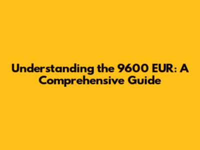 Understanding the 9600 EUR: A Comprehensive Guide