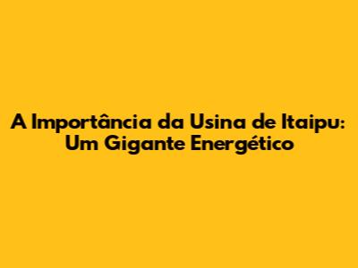 A Importância Da Usina De Itaipu: Um Gigante Energético
