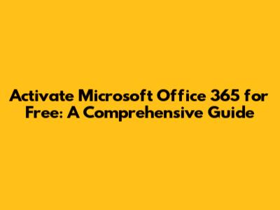 Activate Microsoft Office 365 For Free: A Comprehensive Guide