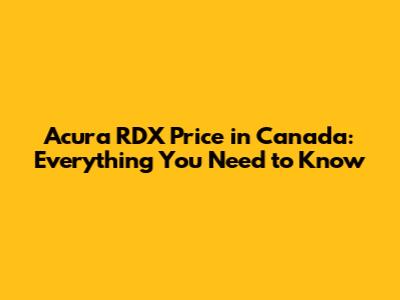Acura RDX Price In Canada: Everything You Need To Know