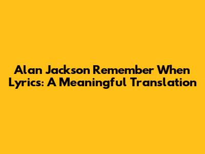 Alan Jackson Remember When Lyrics: A Meaningful Translation