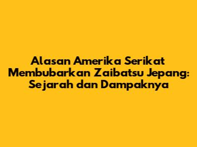 Alasan AS Membubarkan Zaibatsu: