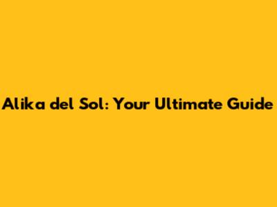 Alika Del Sol: Your Ultimate Guide