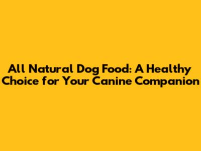 All Natural Dog Food: A Healthy Choice
