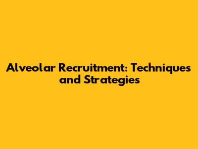 Alveolar Recruitment: Techniques And Strategies