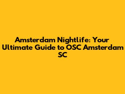 Amsterdam Nightlife: Your Ultimate Guide To OSC Amsterdam SC