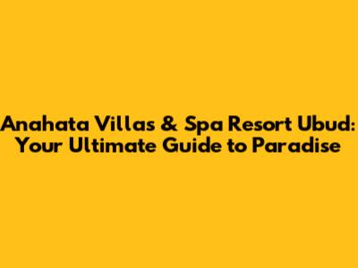 Hey there, fellow travelers! Ever dreamt of escaping to a lush, tropical paradise where tranquility meets luxury? Well, if you have, then you're in for a treat! Today, we're diving deep into the enchanting world of Anahata Villas & Spa Resort Ubud. This isn't just any resort; it's a sanctuary nestled in the heart of Bali's cultural hub, Ubud. Get ready to explore breathtaking villas, rejuvenate your senses at the spa, and immerse yourself in the rich Balinese culture. Let's get started, shall we?
