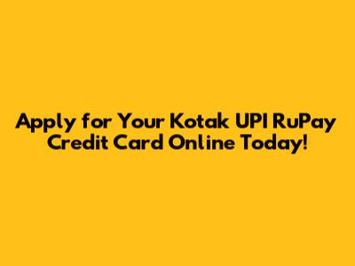 How to Apply Online for the Kotak UPI RuPay Credit Card