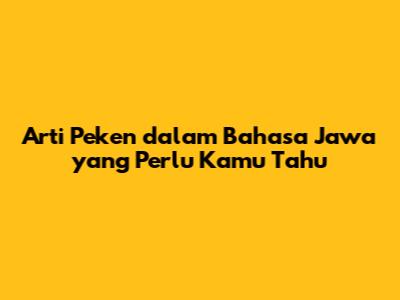 Arti Peken Dalam Bahasa Jawa Yang Perlu Kamu Tahu