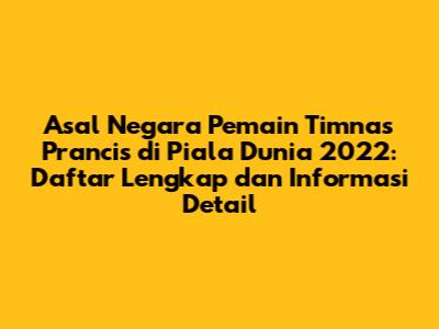 Berikut adalah daftar lengkap pemain timnas Prancis yang bermain di Piala Dunia 2022, beserta informasi mengenai asal negara atau asal usul keluarga mereka. Informasi ini diambil dari berbagai sumber terpercaya dan disusun secara komprehensif untuk memberikan gambaran yang jelas mengenai keberagaman skuad Prancis.