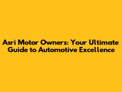 Asri Motor Owners: Your Guide To Exceptional Automotive Care