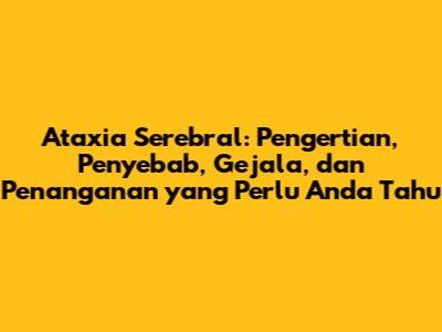 Ataxia serebral adalah kondisi neurologis yang memengaruhi koordinasi gerakan tubuh. Kata “ataxia” sendiri berasal dari bahasa Yunani yang berarti “tanpa koordinasi”. Kondisi ini dapat memengaruhi berbagai gerakan, mulai dari berjalan dan berbicara hingga menelan dan menggerakkan mata. Ataxia serebral dapat disebabkan oleh berbagai faktor, mulai dari masalah genetik hingga cedera otak. Memahami penyebab, gejala, dan pilihan pengobatan adalah langkah penting dalam mengelola kondisi ini. Jadi, mari kita selami lebih dalam tentang dunia ataxia serebral!