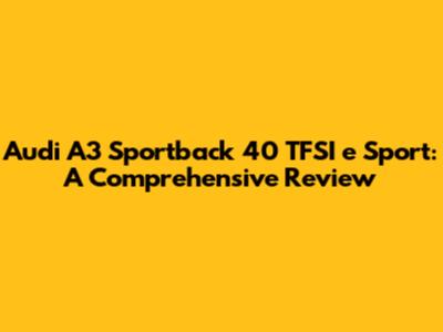 What Makes the Audi A3 Sportback 40 TFSI e Sport Special?