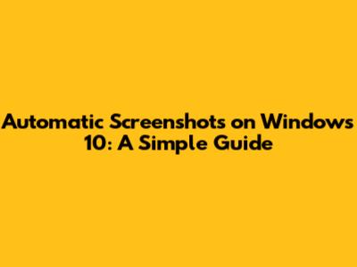 Automatic Screenshots On Windows 10: A Simple Guide