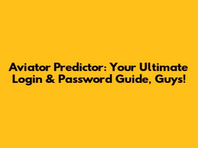 Aviator Predictor: Login & Password Guide