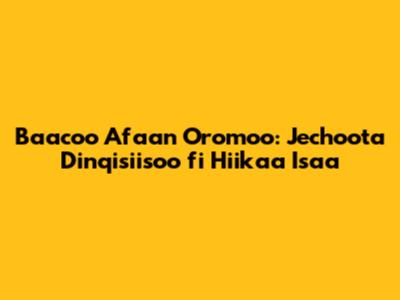 Baacoo Afaan Oromoo – Maqaa kana yeroo dhageessan maal isinitti dhaga'amaa? Isin keessaa baayyeen keessan waan kana beektu, garuu mee isinif haa ibsu. Baacoon jechoota bashannansiisoo ykn tapha sammuu kan ittiin yaada keessan itti gabbisuudha. Afaan Oromoo keessatti, baacoonni faayidaa guddaa qabu. Isaan waa'ee aadaa fi seenaa keenyaa ni barsiisu, jechoota haarawaa akka barannu nu gargaaru, akkasumas sammuu keenya ni jabeessu. Baacoo jechoota dinqisiisoo afaan oromoo mata duree keenya waan ta'eef mee waa'ee isaa bal'inaan haa ilaallu.