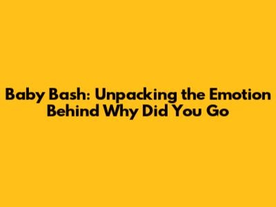 Baby Bash: Unpacking The Emotion Behind Why Did You Go