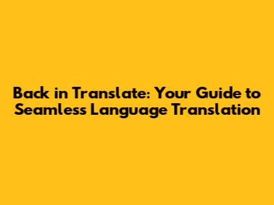 Back In Translate: Your Guide To Seamless Language Translation