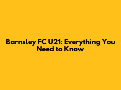 Barnsley FC U21: Everything You Need To Know