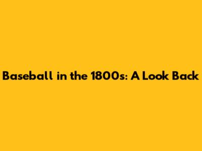 Baseball In The 1800s: A Look Back