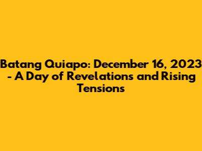 Hey guys! Let's dive into the explosive happenings of the December 16, 2023 episode of Batang Quiapo! This episode was a rollercoaster of emotions, packed with revelations, unexpected alliances, and the ever-present shadow of danger hanging over our beloved characters. We saw Cardo's world getting even more complicated. The relationships were tested, and the fight for justice intensified. Get ready for a detailed breakdown of the key moments and what they mean for the future of the series. This episode wasn't just another installment; it was a significant turning point, setting the stage for even more thrilling developments. We'll unpack everything, from the subtle nuances of character interactions to the major plot twists that left us all on the edge of our seats. So, grab your popcorn, settle in, and let's recap this action-packed episode!