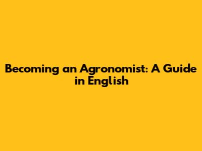 Becoming An Agronomist: A Guide In English