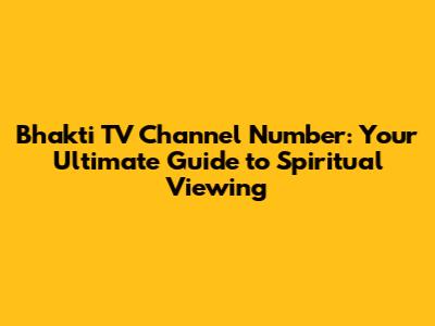 Bhakti TV Channel Number: Your Ultimate Guide