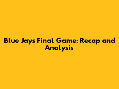 Blue Jays' Final Game: Recap And Analysis