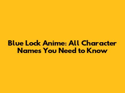 Blue Lock Anime: All Character Names You Need To Know