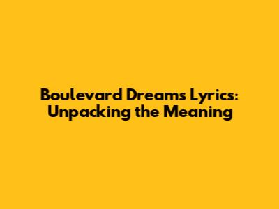 Boulevard Dreams Lyrics: Unpacking The Meaning