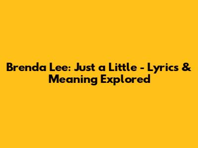 Brenda Lee: Just A Little - Lyrics & Meaning Explored