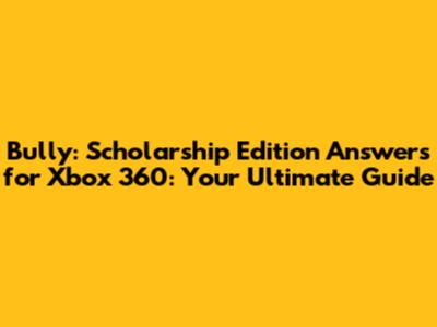 Bully: Scholarship Edition Answers For Xbox 360
