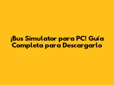¡Bus Simulator Para PC! Guía Completa Para Descargarlo