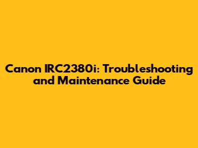 Canon IRC2380i: Troubleshooting And Maintenance Guide