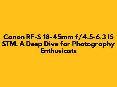 Hey photo fanatics! Today, we're diving headfirst into the Canon RF-S 18-45mm f/4.5-6.3 IS STM lens, a fantastic piece of kit that's become a go-to for many budding photographers. This lens is a real workhorse, especially if you're rocking an APS-C mirrorless camera from Canon, like the EOS R50 or the EOS R10. We're going to break down everything you need to know about this lens, from its key features and performance to how it stacks up against the competition and, of course, how to care for it. Let's get started!