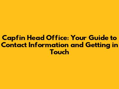 How to Find Capfin's Head Office Contact Information
