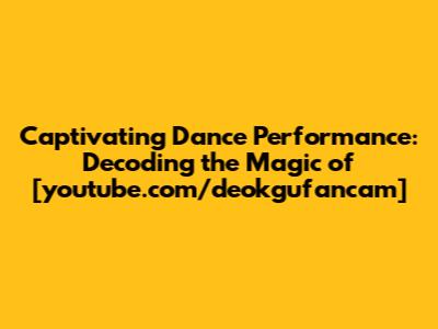 Hey everyone! Ever stumbled upon a video and found yourself completely mesmerized? Well, that's the feeling you get when you dive into the world of dance performances, especially the ones found on platforms like YouTube. Today, we're going to break down one such gem: the captivating dance performance from [youtube.com/deokgufancam]. We'll explore what makes these videos so engaging, why they go viral, and what you can learn from them. So, grab your snacks, get comfy, and let's get started!
