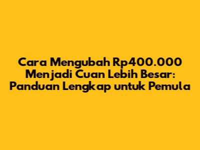 Cara Mengubah Rp400.000 Menjadi Cuan Lebih Besar