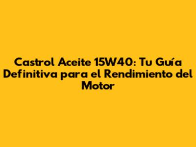 Castrol Aceite 15W40: Guía Completa Y Beneficios