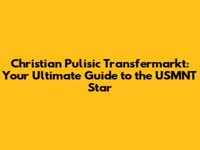 Christian Pulisic Transfermarkt: Latest Stats & News